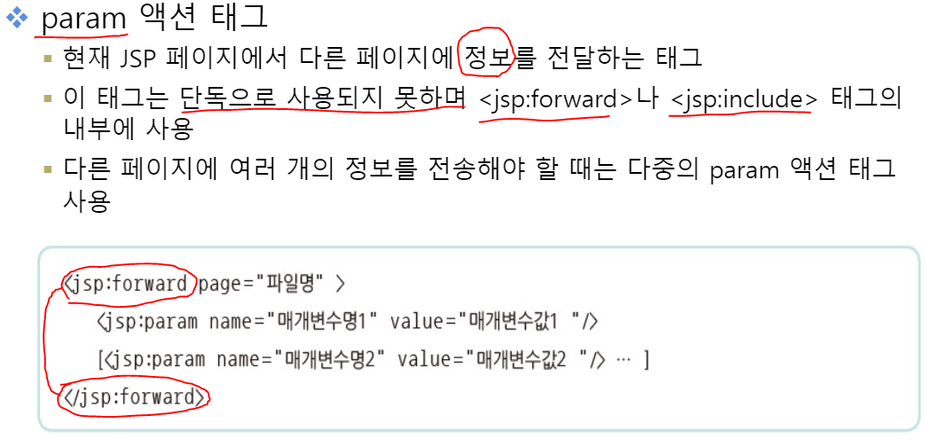 그러므로, 지역변수(매개변수를 가지고 다른페이지로 넘어가기위해)를 사용하기 위해(넘겨주기 위해), param 액션 태그를 사용한다.