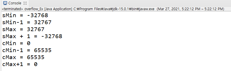 | Java 15 정수형의 오버플로우 (0) | 2021.03.27 |