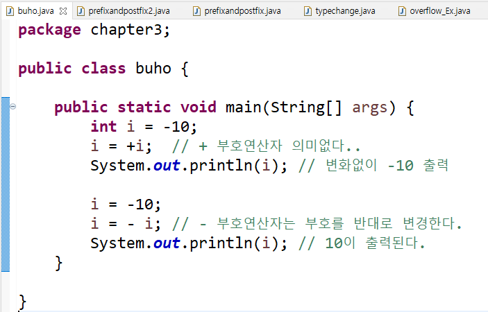 '-' 는 피연산자의 부호를 반대로 변경한다.