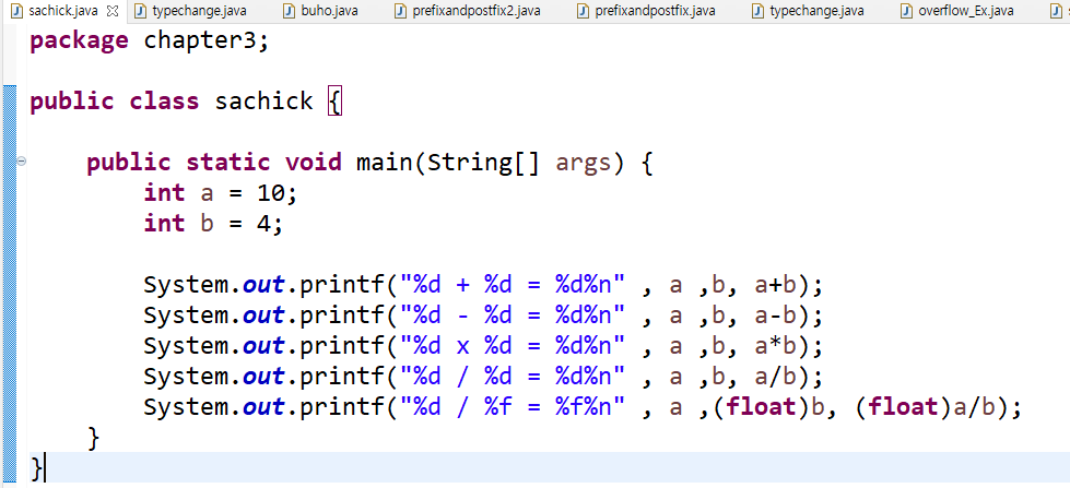 10 / 4 → 2 // 소수점 이하는 버려진다. 컴퓨터는 같은 타입끼리만 계산 할 수 있다.