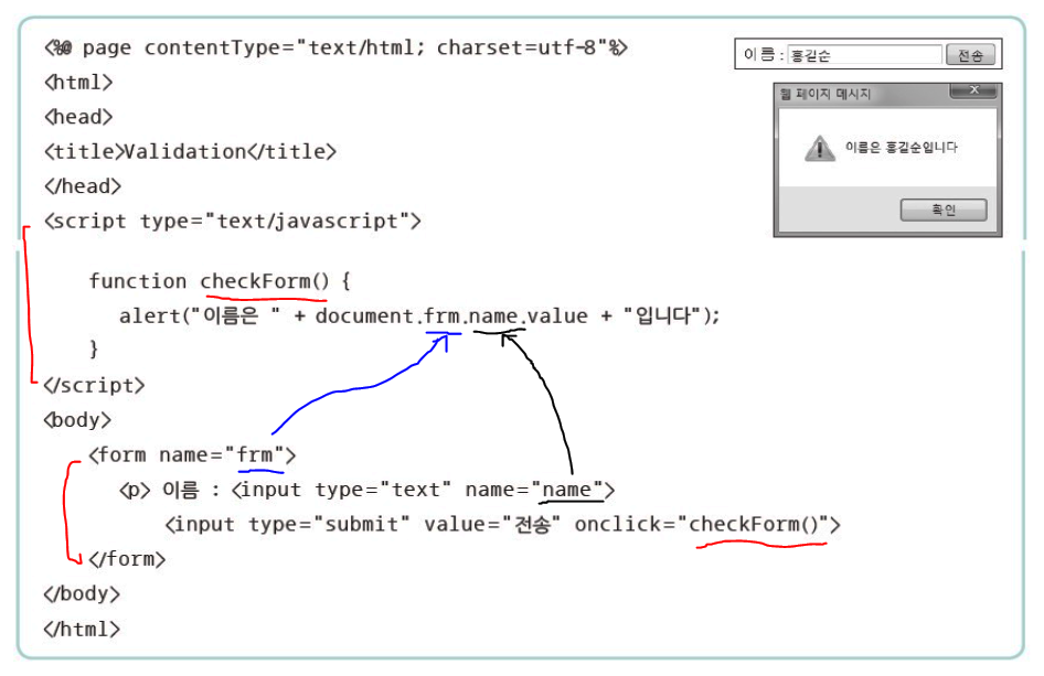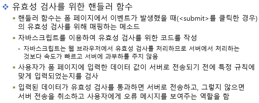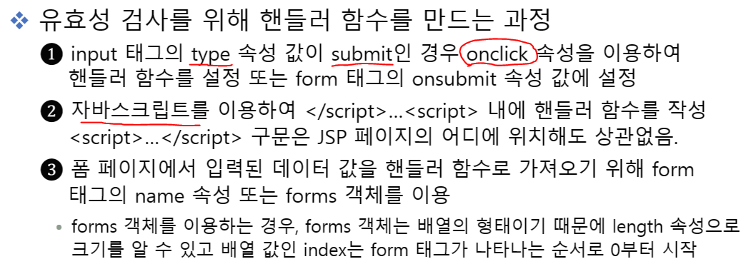 유효성 검사는 Client단에서 javascript를 이용하여 처리한다. onclick 으로