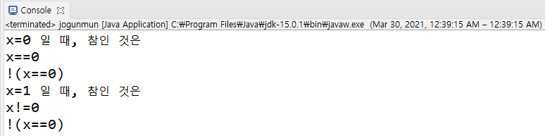 | 조건식 | 조건식이 참일 조건 |