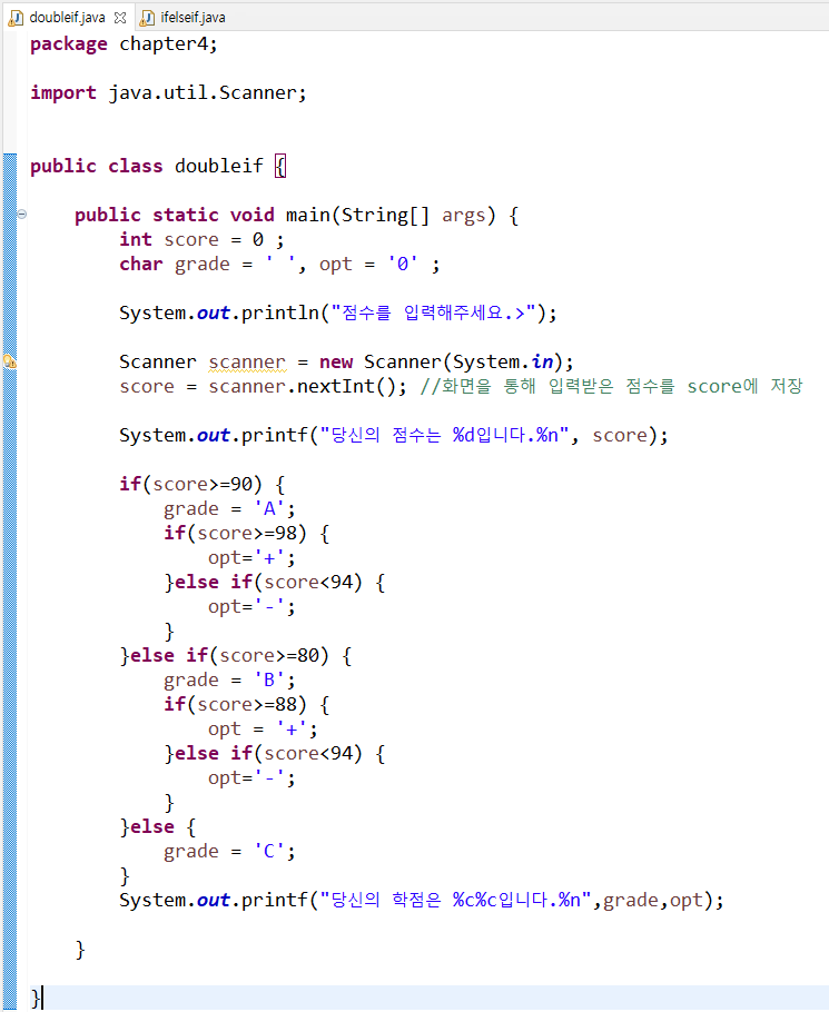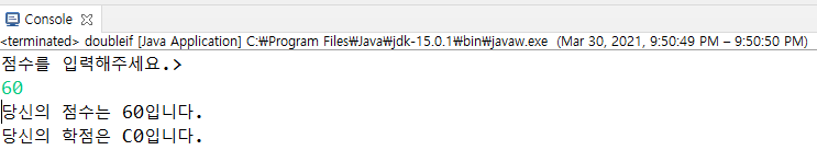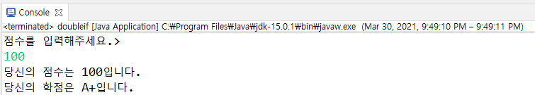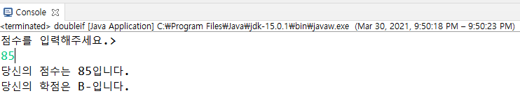 | Java 06 if-else if문 예제 (0) | 2021.03.30 |