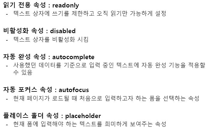HTML 41 <input> 태그 사용 시 주요 속성