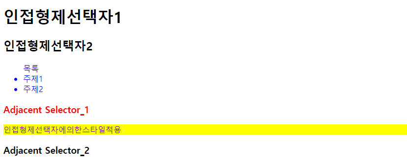 <p>인접형제선택자에의한스타일적용</p>