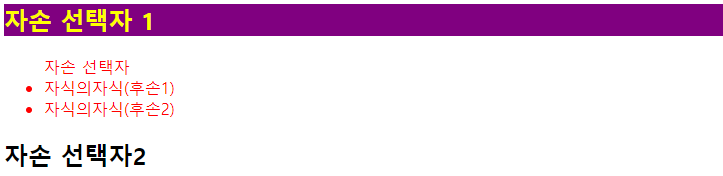 <h2>자손 선택자 1</h2>