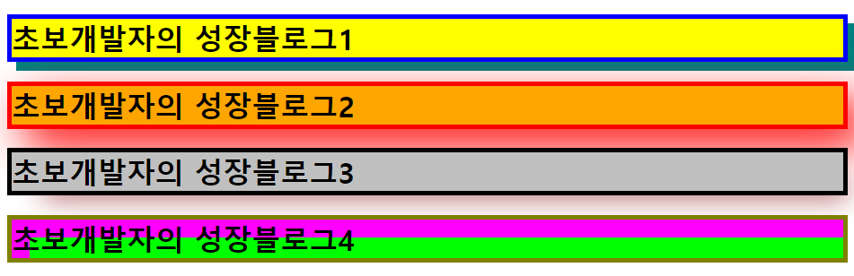 <h1 class="boxshadow4">초보개발자의 성장블로그4</h1>
