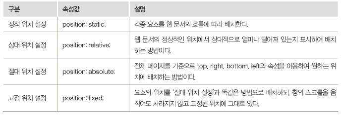 -텍스트, 이미지, 표 등을 웹 문서의 흐름에 따라 배치하는 방법