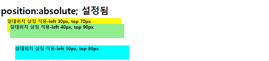 <div class="ap1">절대위치 설정 적용-left 30px, top 70px</div>