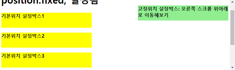 <p class="fp">고정위치 설정박스: 오른쪽 스크롤 위아래로 이동해보기</p>
