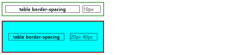 border-spacing: 20px 40px; /* 첫번째 값: 좌우, 두번째 값: 상하*/