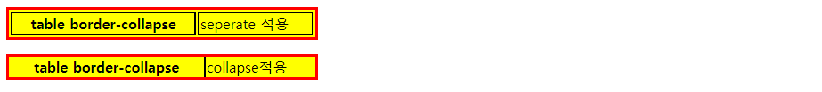 - border-collapse: seperate; 는 테이블과 셀 사이의 테두리 간격을 둔다. border-spacing 속성으로 정함.