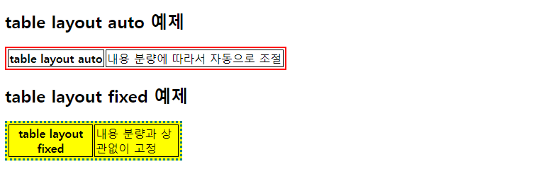 <h2>table layout auto 예제</h2>