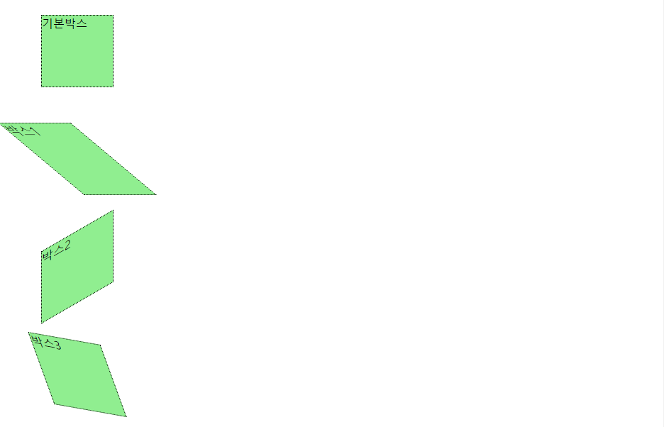 transform: skew (X축 기울기각도, Y축 기울기각도);