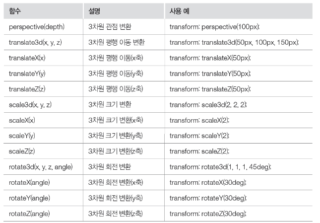 3차원 변환 함수