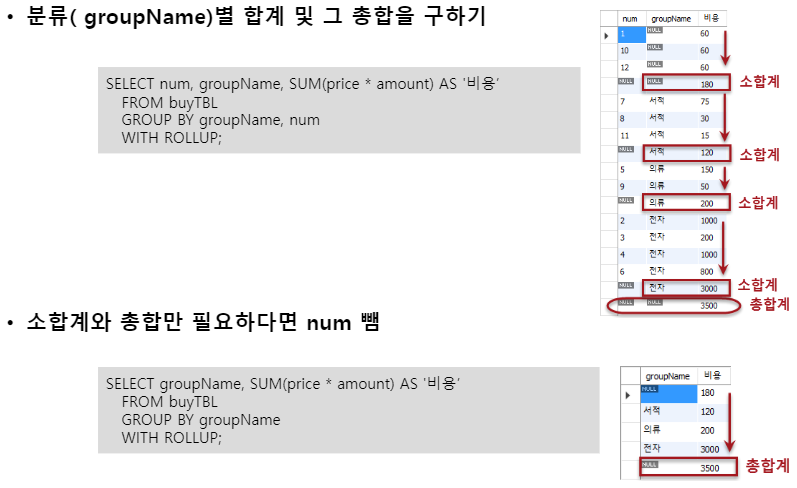 DataBase 13 WITH ROLLUP 절