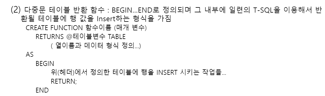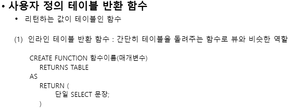 사용자 정의함수의 종류