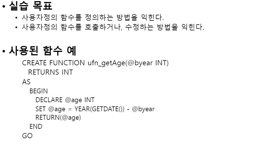 사용자 정의 함수의 생성/수정/삭제