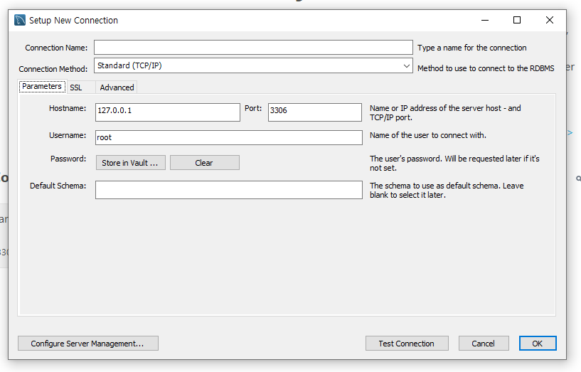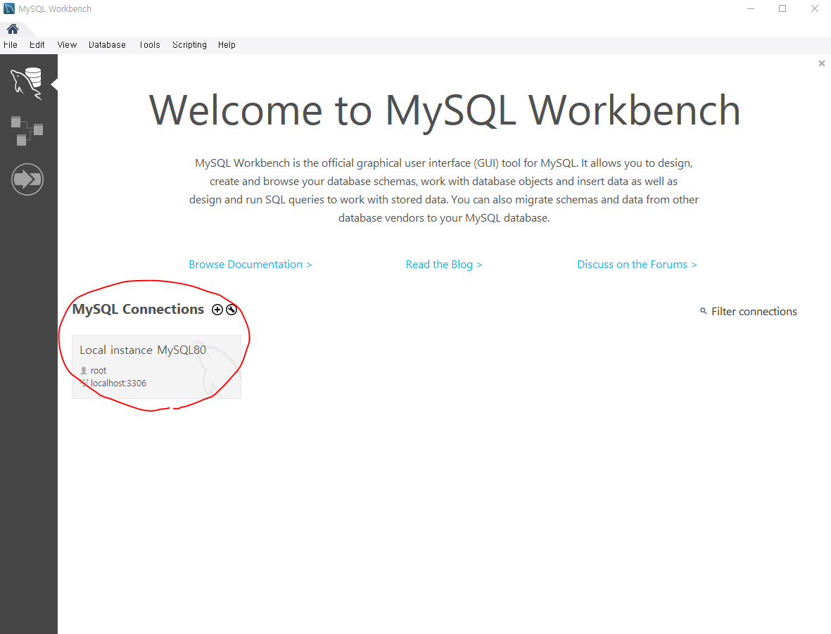 Workbench에서 제일먼저 MYSQL CONNECTION을 해야한다.