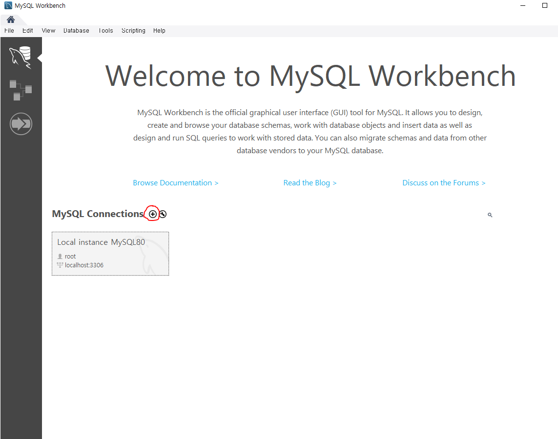 다시 mysql 접속해서 플러스버튼을 누르고