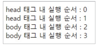 document.write("head 태그 내 실행 순서 : " + num + "<br/>");