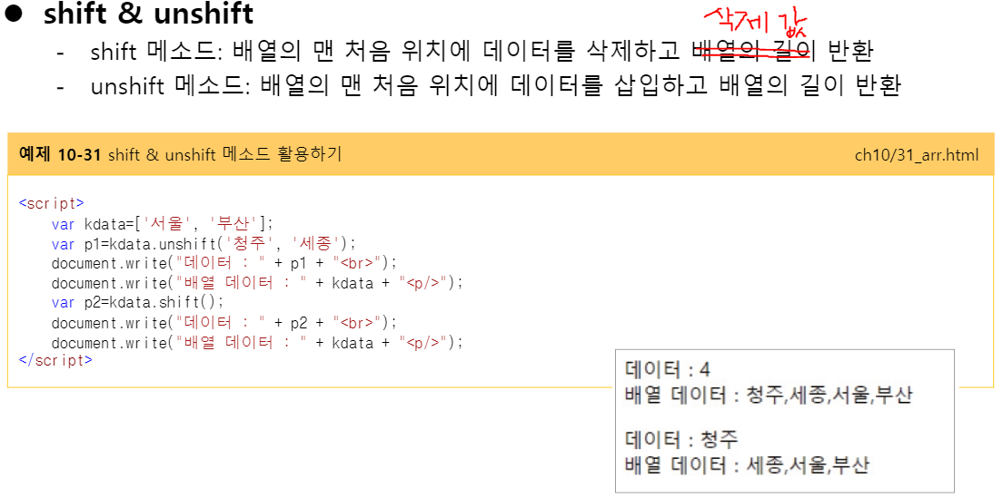 Javascript 20 shift( ) 와 unshift( ) 메소드