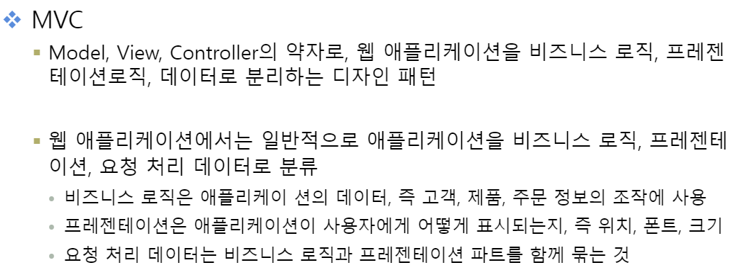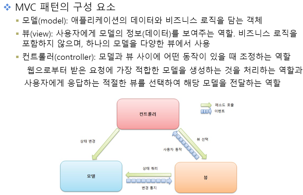Model : 자바빈을 써서 db와 연동되는 부분, 자바페이지에서 개터와 세터를 자바빈에서 객체만들지 않고, jsp페이지에서 db에 값들을 가져오고 빼고온다.