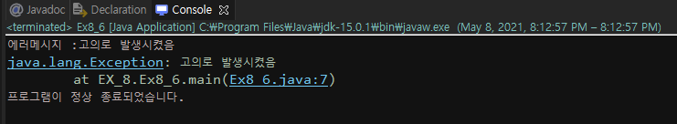 2. 키워드 throw를 이용해서 예외를 발생시킨다.