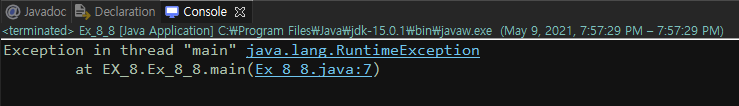 throw new RuntimeException(); //RuntimeException을 고의로 발생시킨다.