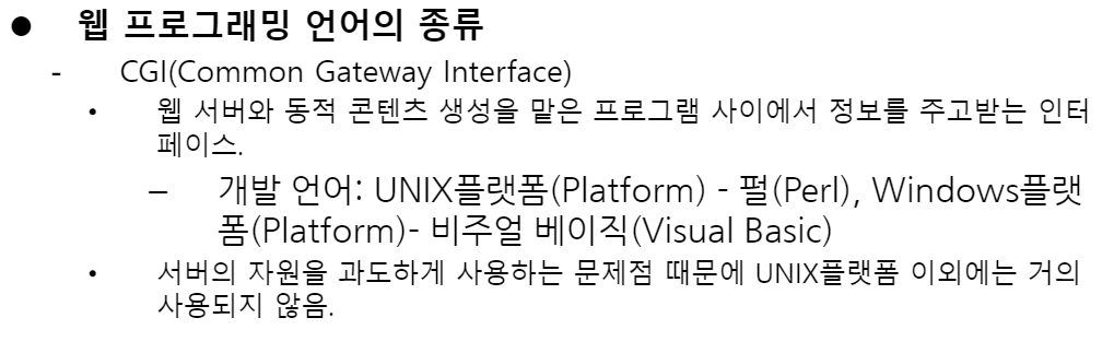 추가) CGI는 서버에 부하를 줘서(리소스를 많이쓴다.) 요새는 사용하지 않는다.